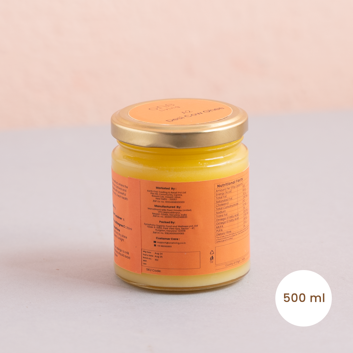 O.N.E. Living’s A2 Cow Ghee is a nutrient powerhouse made using the traditional Bilona method from the milk of Sahiwal and Rathi cows. The Bilona method involves churning the curd both clockwise and anticlockwise in a wood churner, ensuring that every drop of desi ghee is packed with antioxidants and essential nutrients.