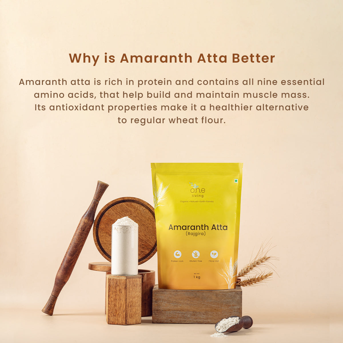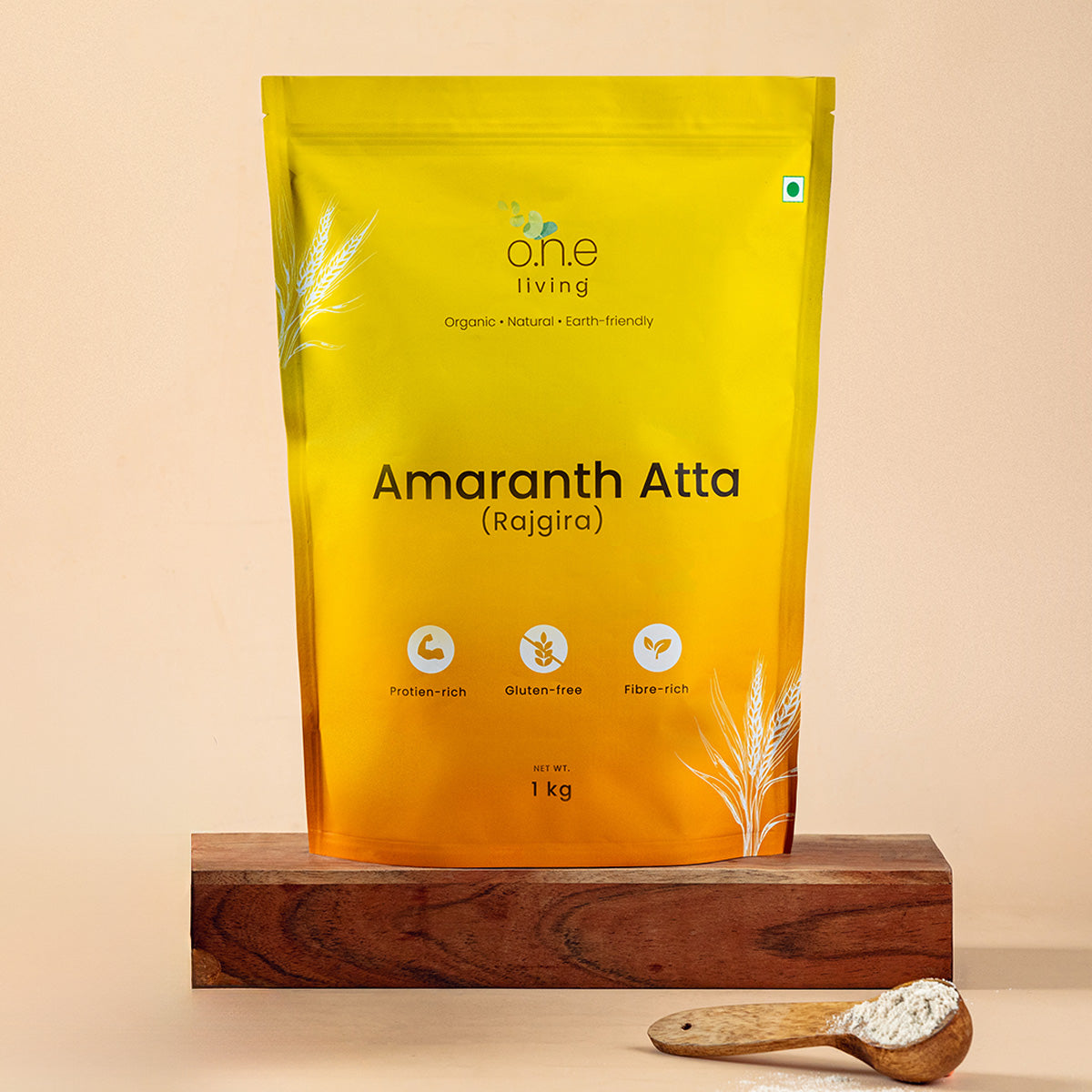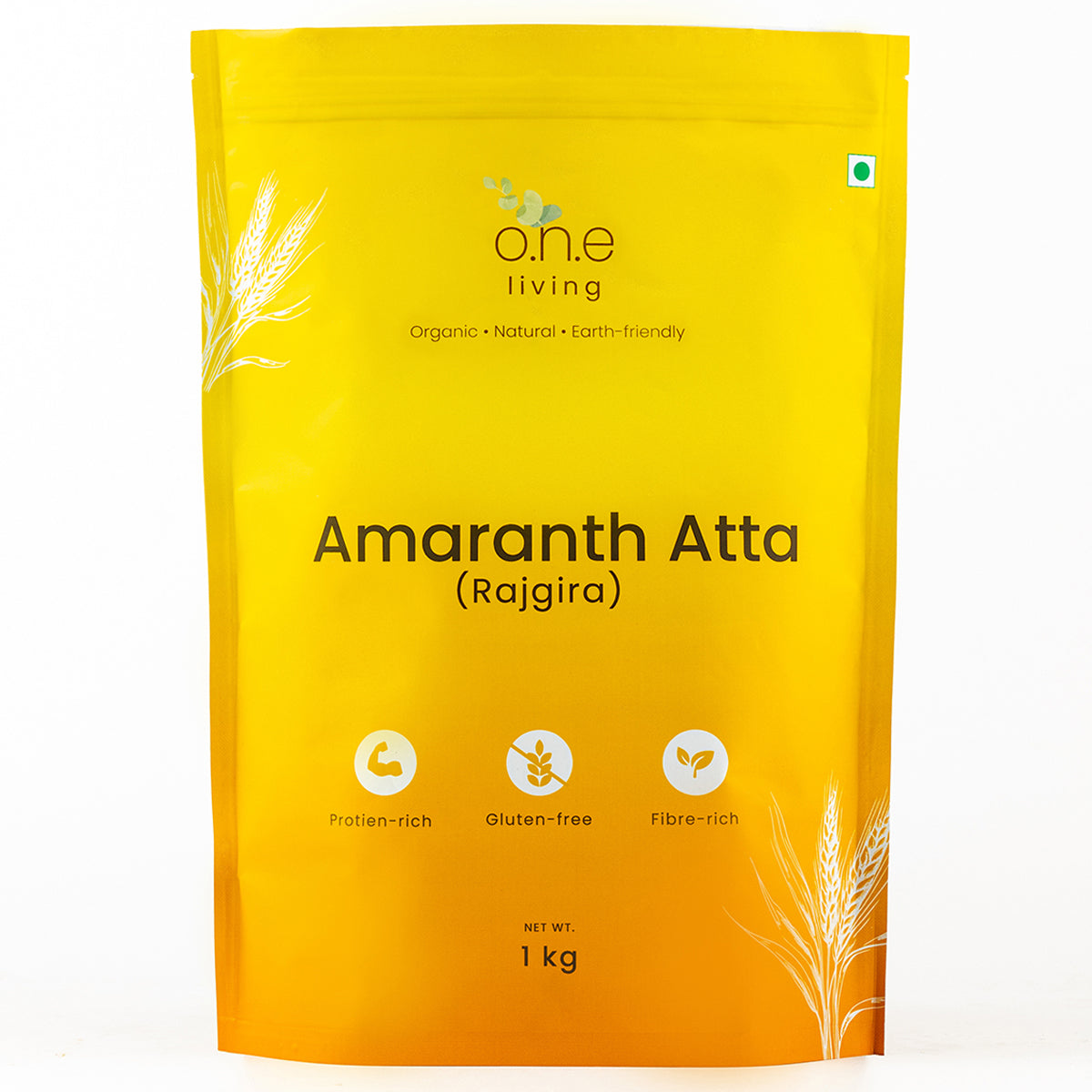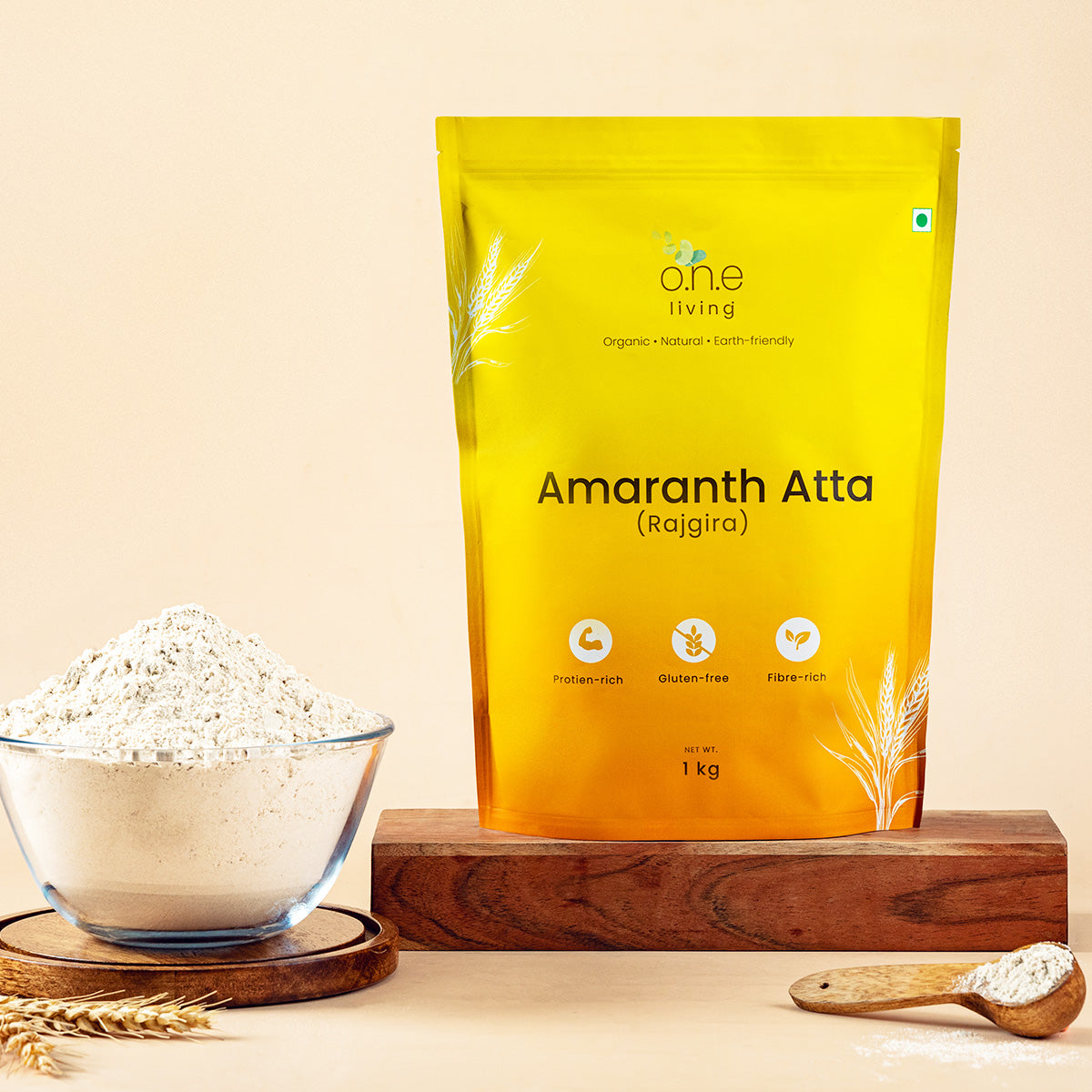 Amaranth (Rajgira) Atta is a nutrient-dense, gluten-free flour known for its remarkable health benefits and has been a staple in Indian households. O.N.E Living’s Amaranth Atta is made from ancient Amaranth seeds, ensuring it retains the natural nutty flavour that is perfect for baking bread or cookies. Rich in protein, fibre and calcium, amaranth atta helps build and maintain muscle mass, aid digestion and support bone health.