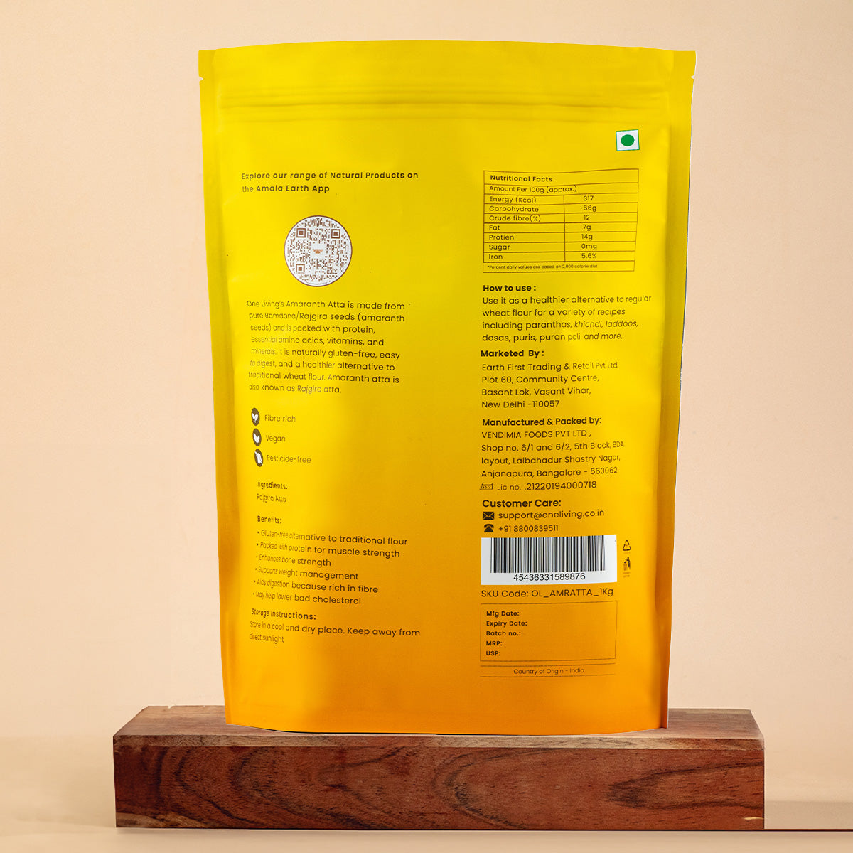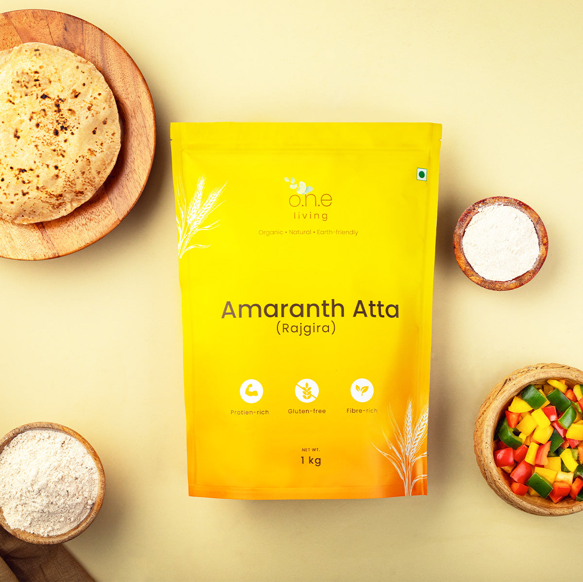 Amaranth (Rajgira) Atta is a nutrient-dense, gluten-free flour known for its remarkable health benefits and has been a staple in Indian households. O.N.E Living’s Amaranth Atta is made from ancient Amaranth seeds, ensuring it retains the natural nutty flavour that is perfect for baking bread or cookies. Rich in protein, fibre and calcium, amaranth atta helps build and maintain muscle mass, aid digestion and support bone health.