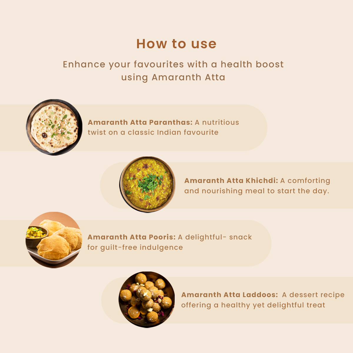 - Parathas: Use Amaranth Atta to make delicious and healthy parathas, adding nutritious twist to your meal.