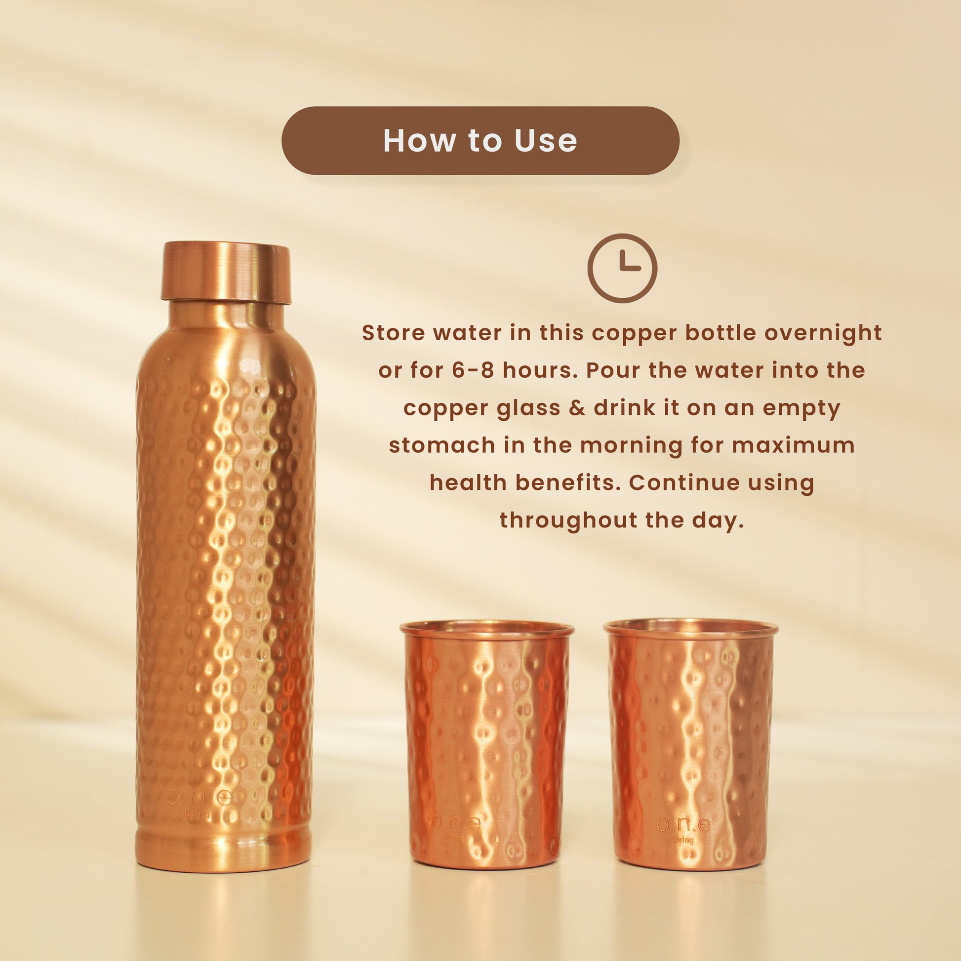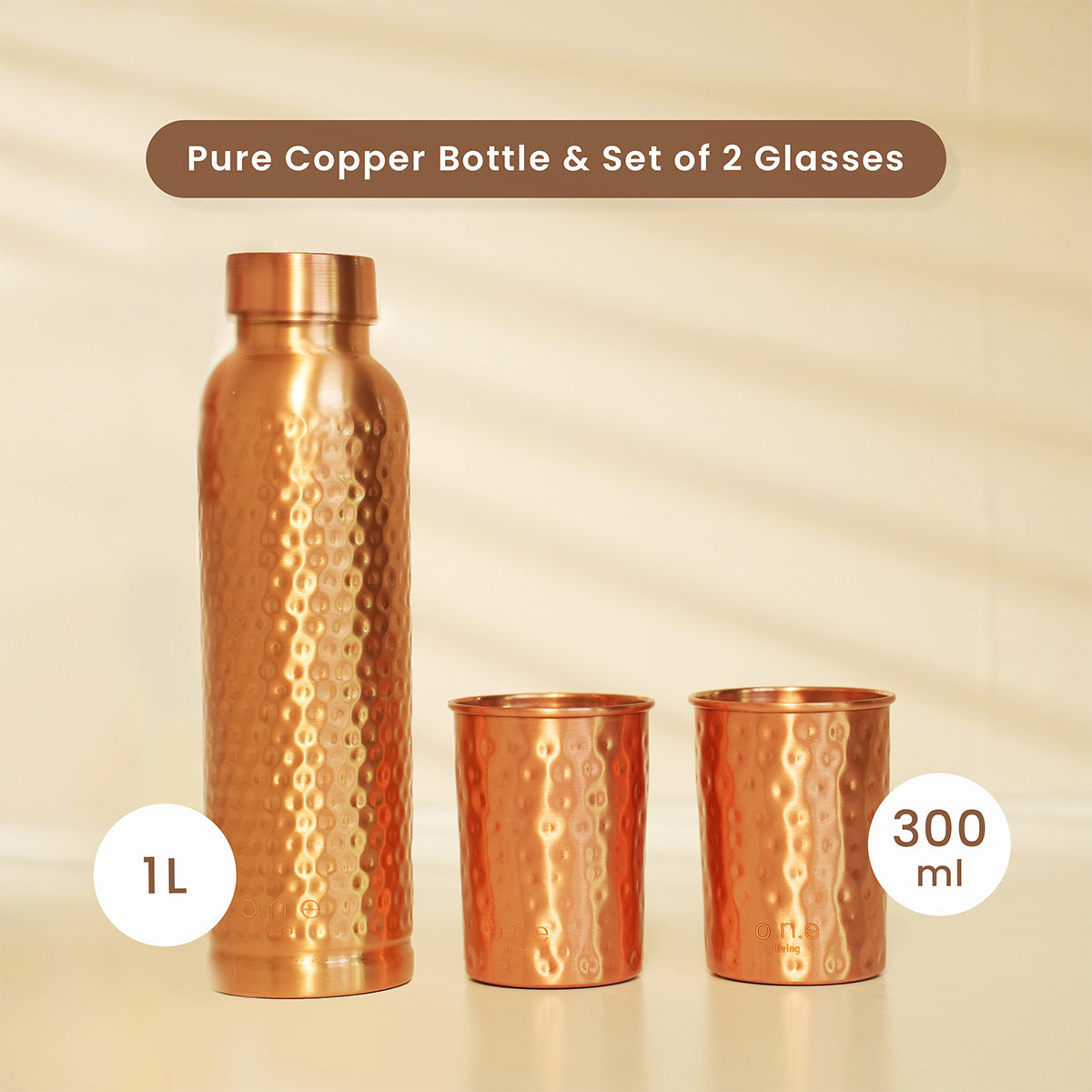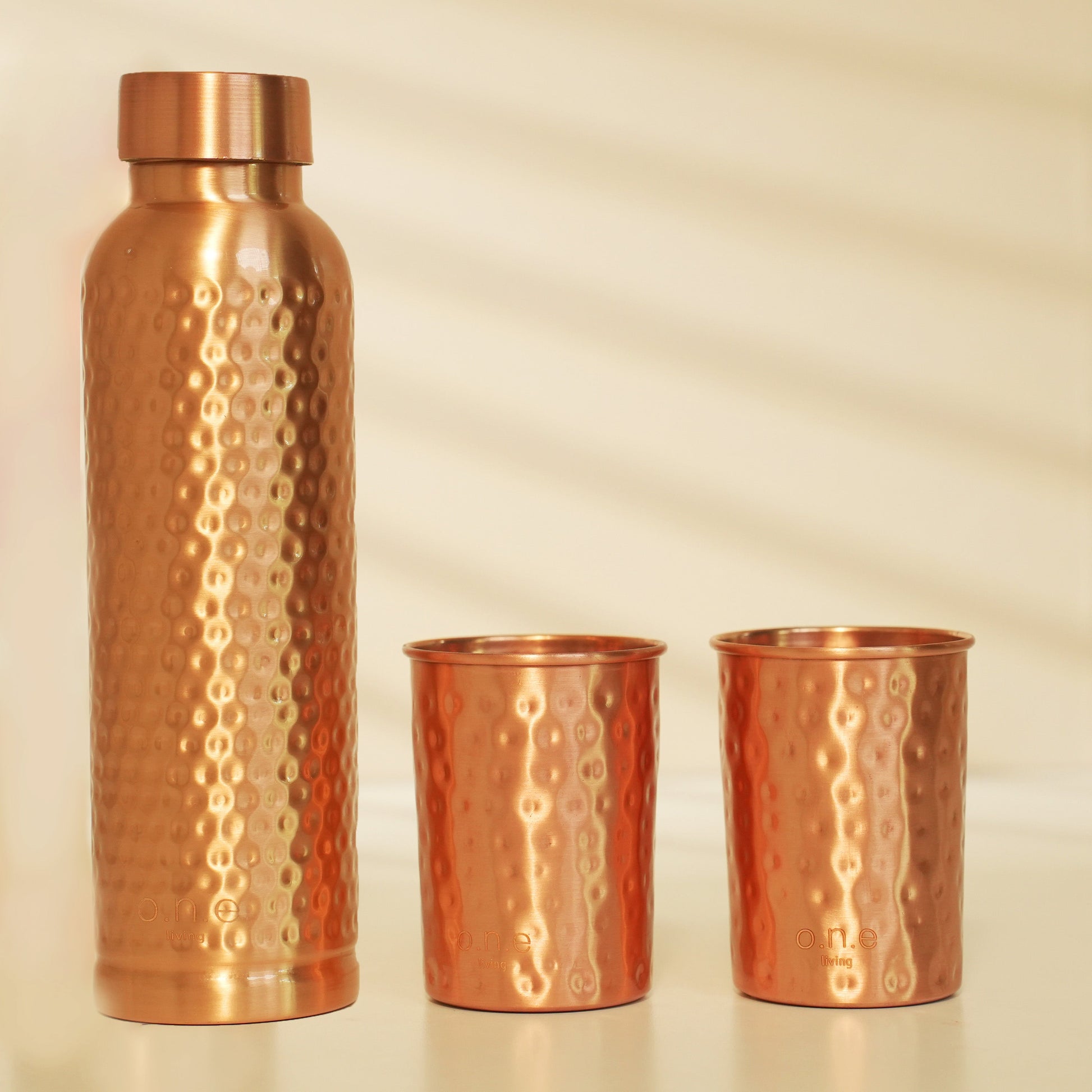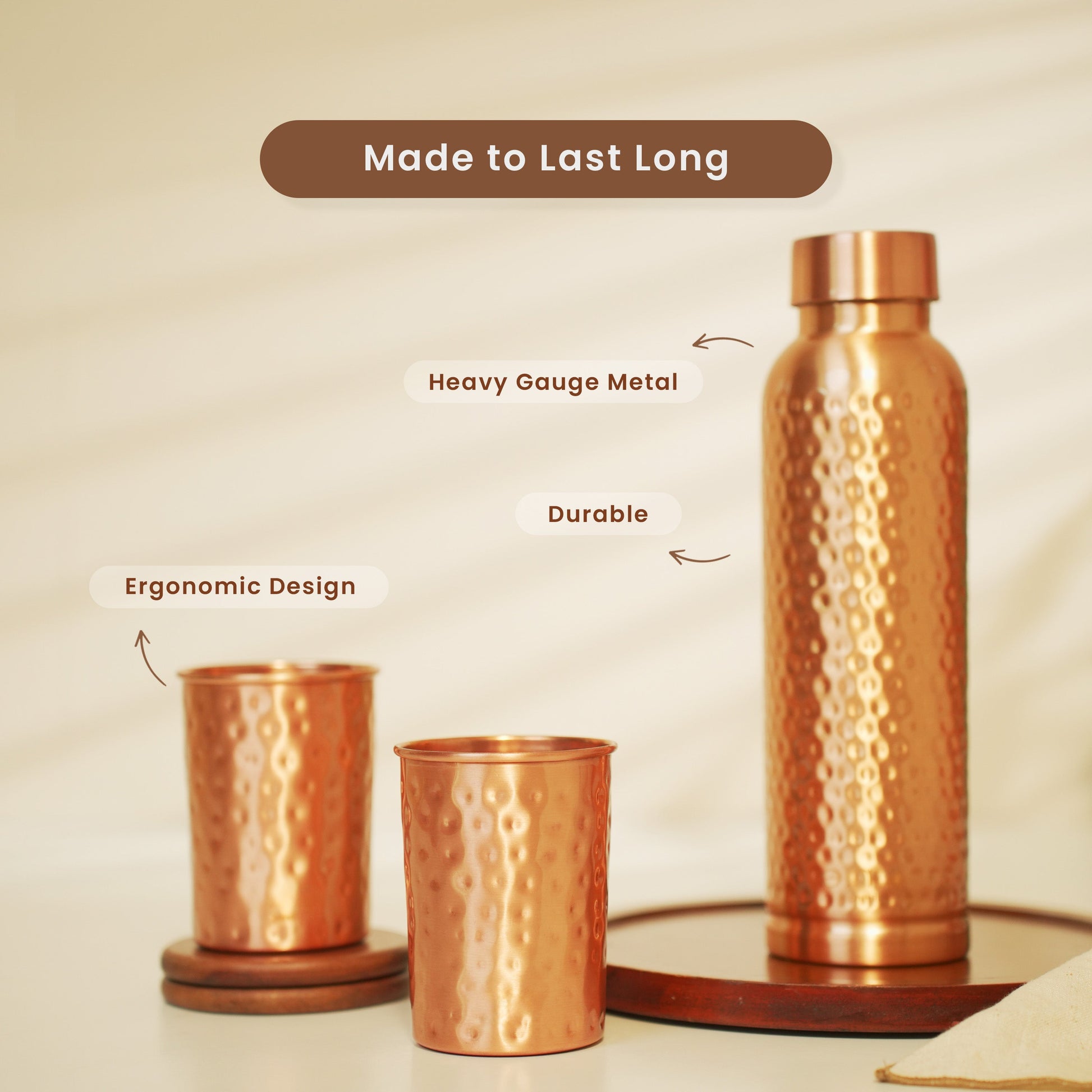 Pure Copper Bottle & 2 Glasses Set | Hammered
