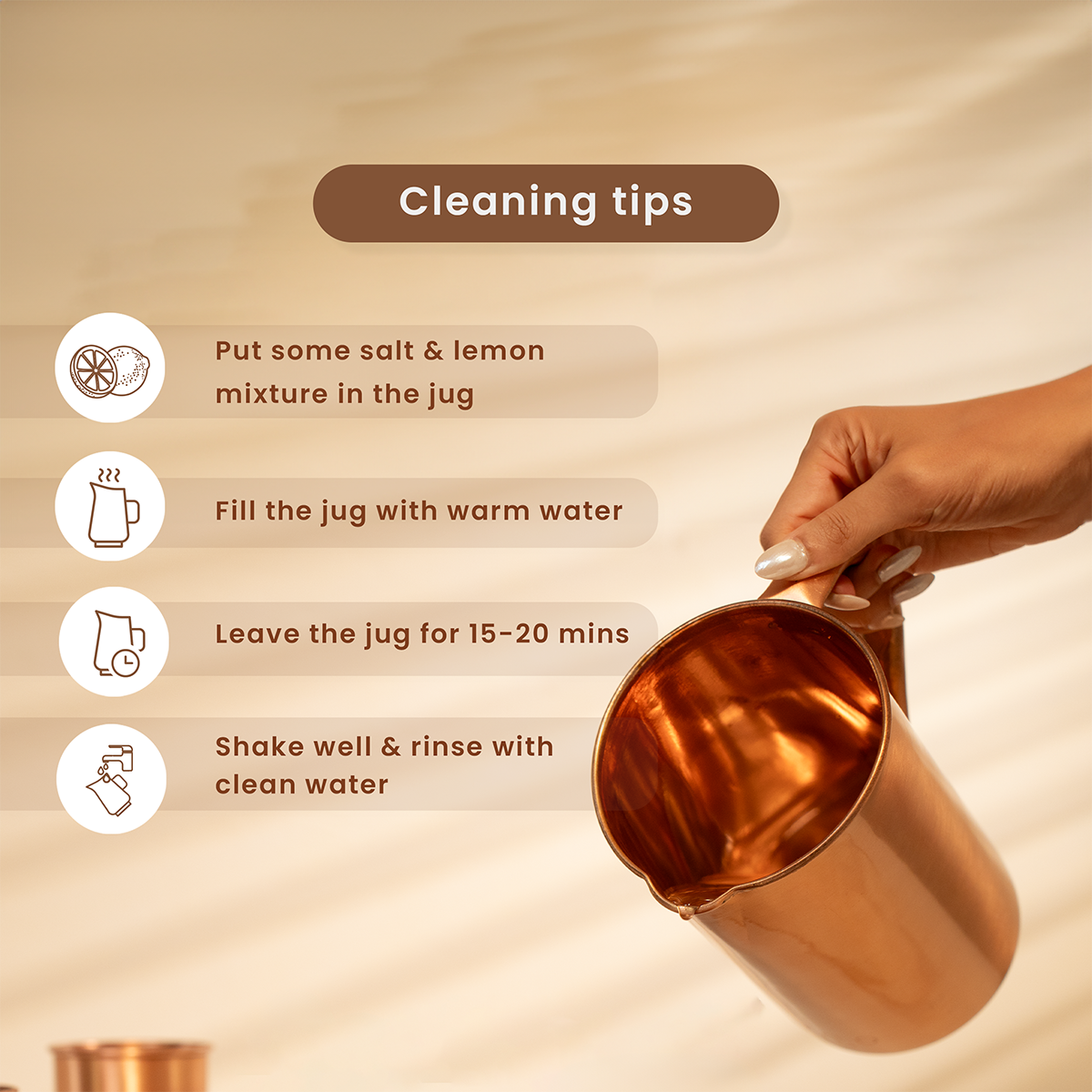 Please Note: It is normal for the copper jug to develop black spots (known as patina), which is a result of the oxidation process. These spots do not impact the effectiveness of the jug in any way.
