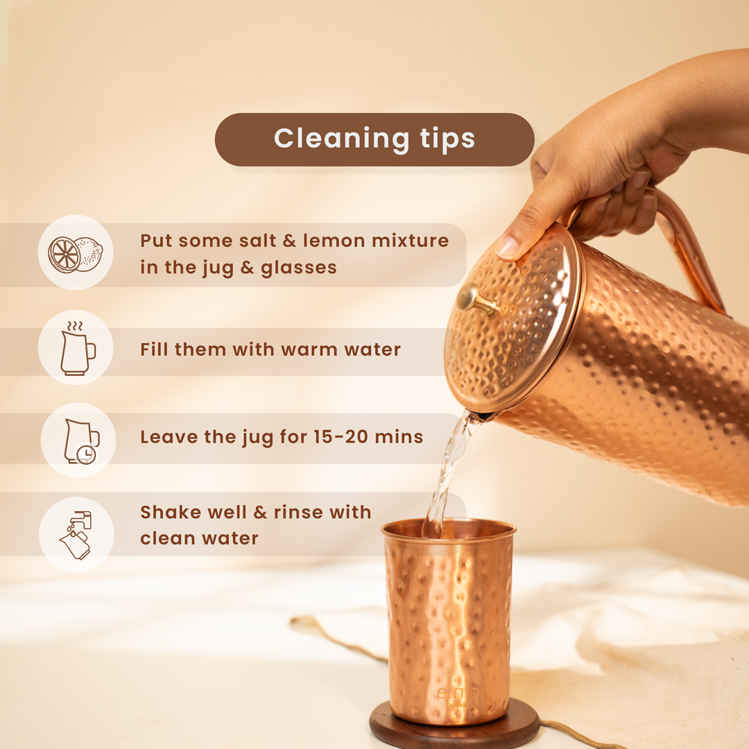 Explore handcrafted copper jug, copper glass, copper glassware, copper glass set, copper glass price, copper jug and glass and more copper vessels at Amala Earth and choose a healthier way to keep yourself hydrated.