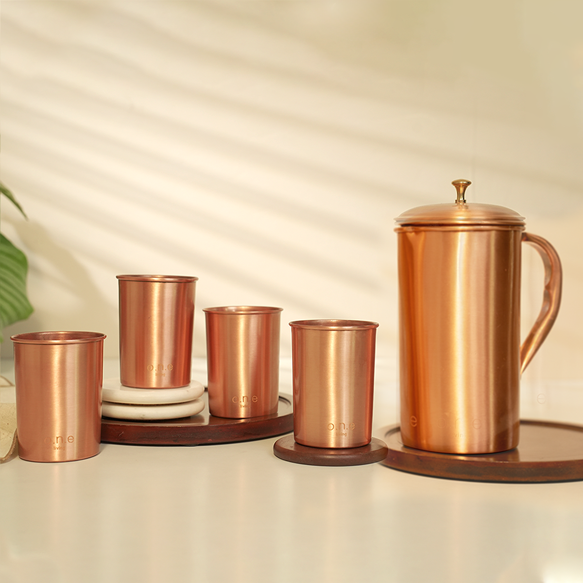 Copper is celebrated in Ayurveda for its ability to balance the Vata, Pitta, and Kapha doshas that help promote overall wellness. Storing water in copper vessels helps improve digestion, boost immunity, enhances skin health, and strengthens bones. Meanwhile, the antimicrobial properties of copper ensure that the water stays fresh and pure.