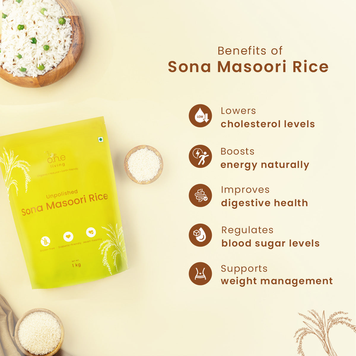 Sona Masoori Rice (1 Kg): Sona Masoori is an unpolished, gluten-free rice variant that retains its natural bran and nutrients, offering a healthier alternative to white rice.