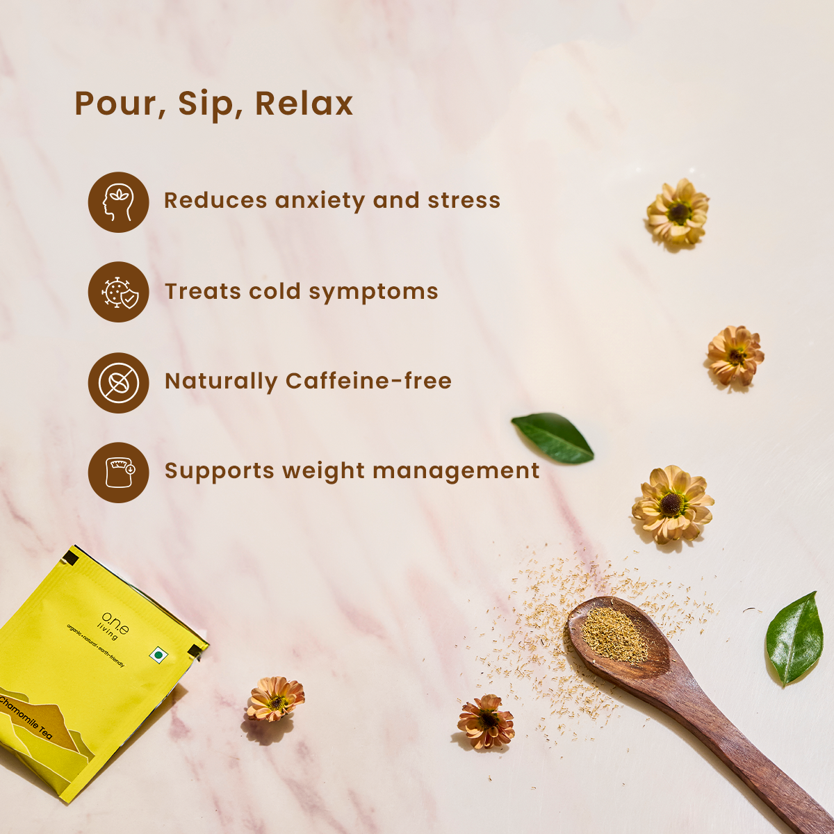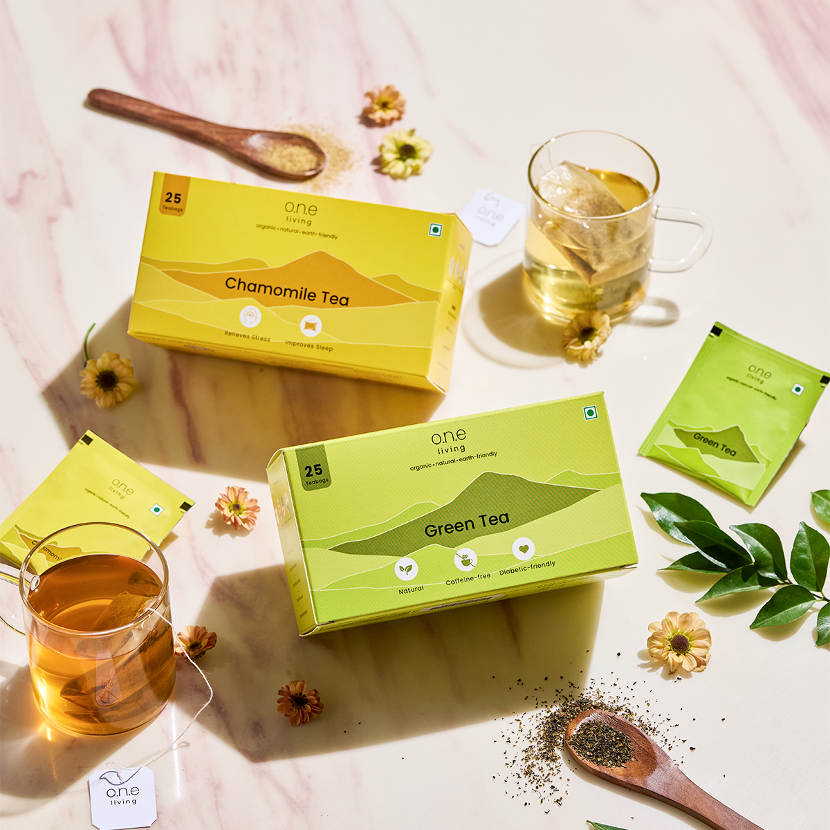 Experience wellness with O.N.E Living’s Green Tea and Chamomile Tea Combo Pack. This healthy combo is designed for those who appreciate the benefits of natural, caffeine-free beverages to unwind and adopt a healthier lifestyle.