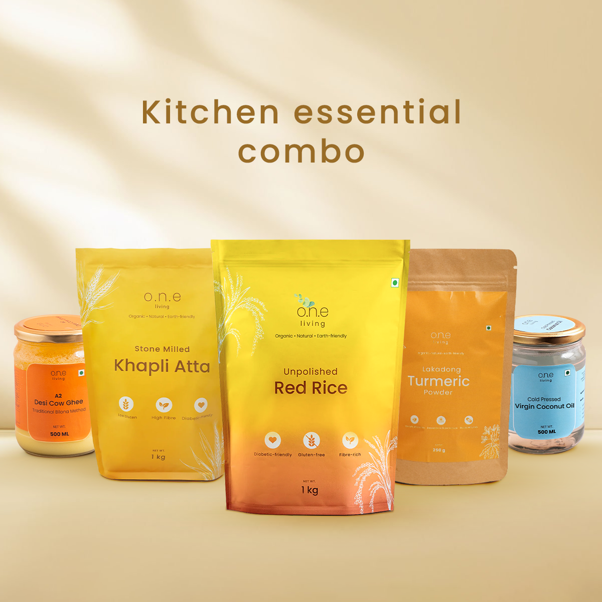 Healthy Food Starter Pack | Khapli Atta, A2 Ghee, Coconut Oil, Lakadong Turmeric & Red Rice