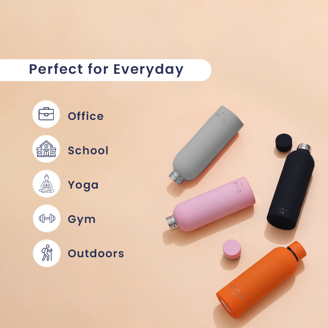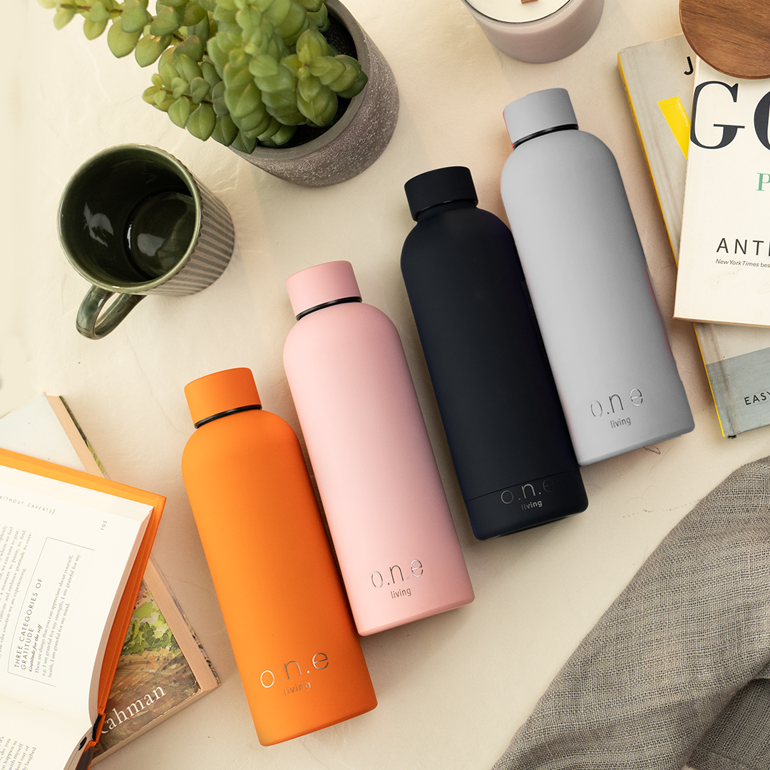 Make the switch to mindful living with One Living’s insulated stainless steel bottles. The double-wall insulation will keep your beverages refreshingly cold or comfortably warm for up to 9+ hours, allowing you to take them with you wherever you go. The ergonomic design makes them easy to carry whether you're hitting the gym, heading to work, or going to school.