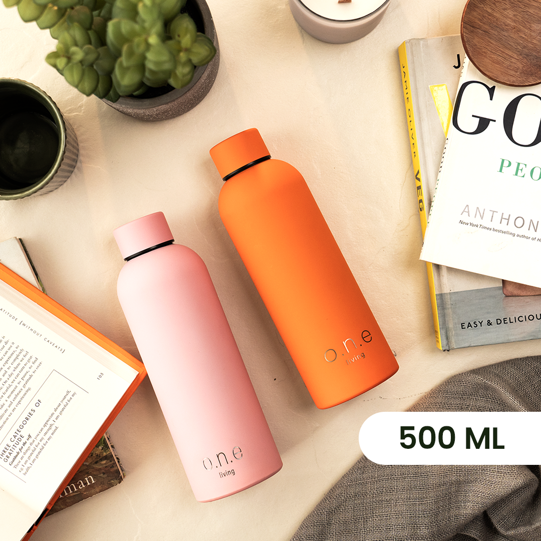 Steel Water Bottle | Orange & Light Pink | 500 ml | Set of 2