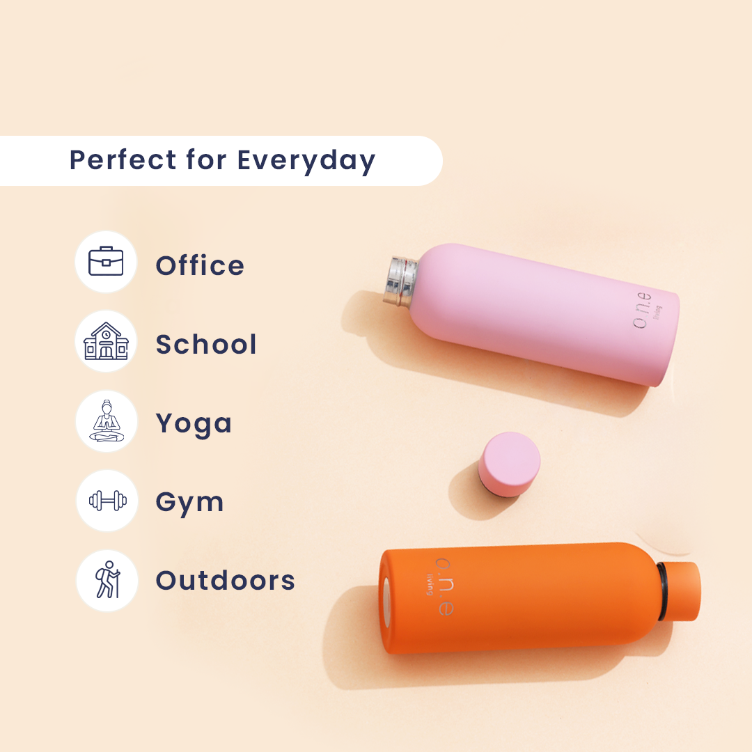 Make the switch to mindful living with One Living’s insulated stainless steel bottles. The double-wall insulation will keep your beverages refreshingly cold or comfortably warm for up to 9+ hours, allowing you to take them with you wherever you go. The ergonomic design makes them easy to carry whether you're hitting the gym, heading to work, or going to school.